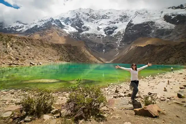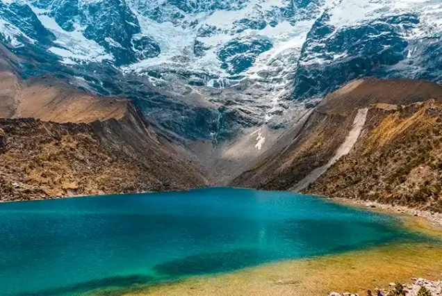 We start our expedition with a pickup from your hotel at 05:00 a.m. We travel by private bus for approximately 3 hours to the village of Tinke (3,800m), the gateway to the Ausangate region. Here, we meet our team of muleteers (arrieros) and horses who will carry our gear. We begin hiking gently uphill for about 3-4 hours, with the majestic snow-capped Ausangate mountain growing larger in front of us. We arrive at our first campsite, Upis (4,400m), by lunchtime. In the afternoon, you can relax your muscles in the Upis natural hot springs while watching the sunset over the glaciers.